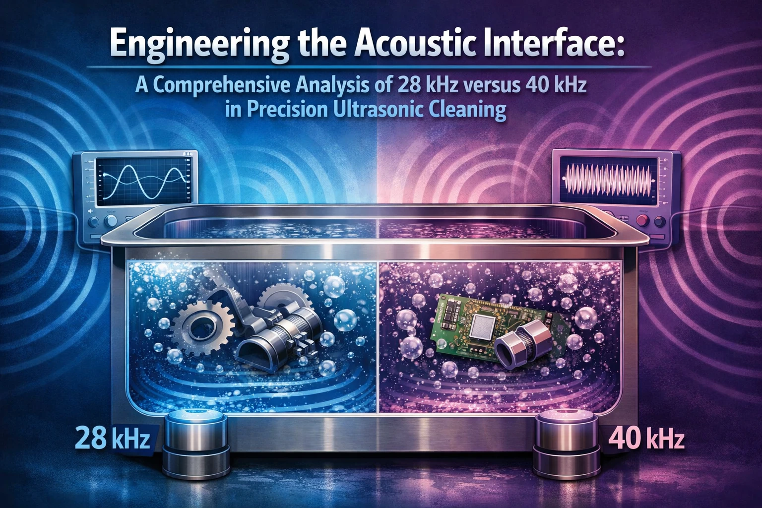 مقارنة تشغيلية بين 28kHz و40kHz لاختيار نافذة التنظيف المناسبة للحالة الواقعية.
