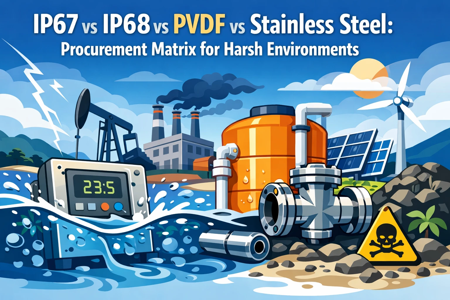 IP67 vs IP68 vs PVDF vs الفولاذ المقاوم للصدأ: مصفوفة المشتريات للبيئات القاسية