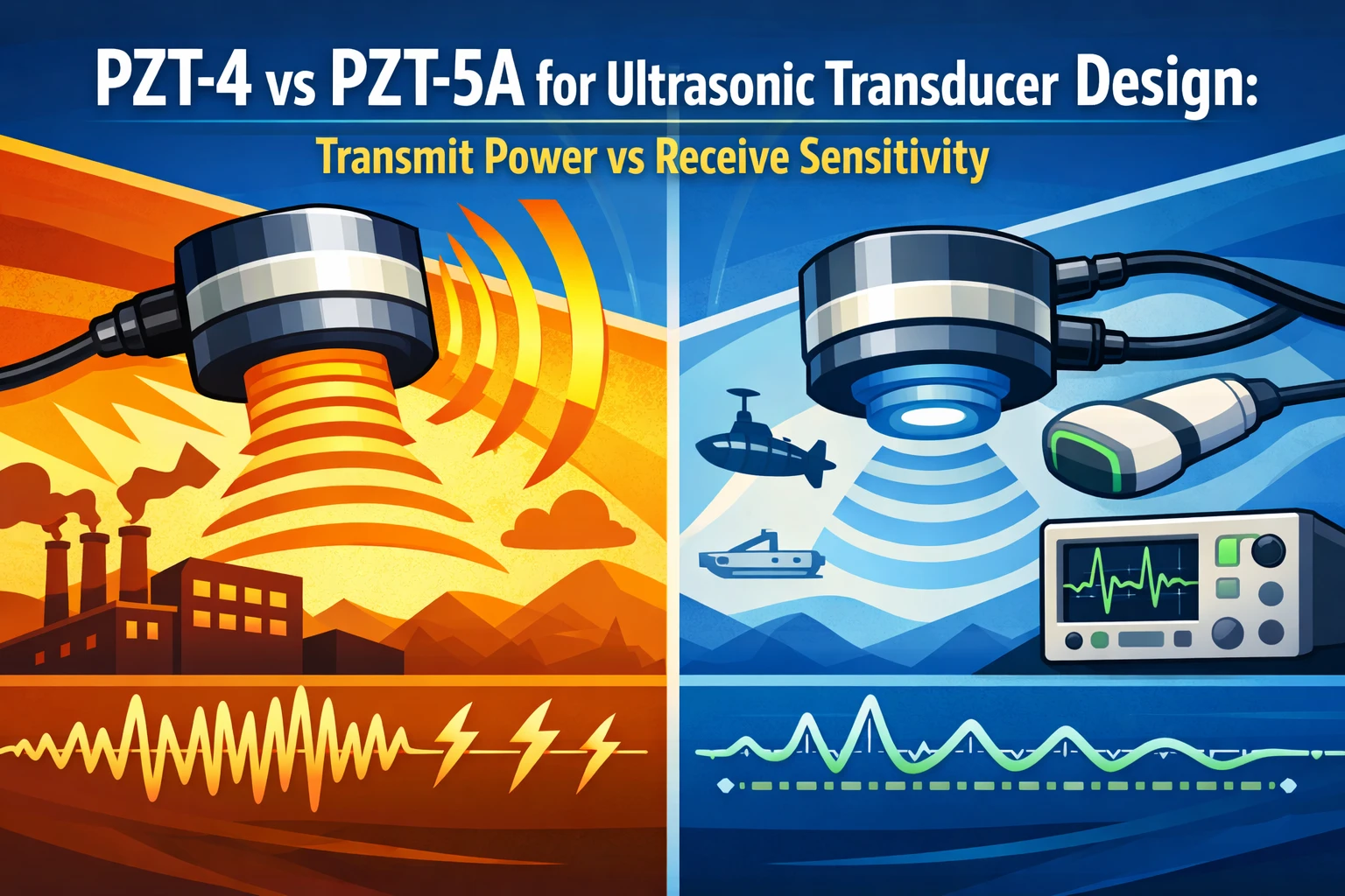 PZT-4 مقابل PZT-5A في تصميم المحول بالموجات فوق الصوتية: قدرة الإرسال مقابل حساسية الاستقبال